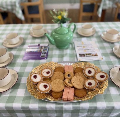 Staff and trustees posing before getting ready for the day’s visitors, with tea and biscuits for all.